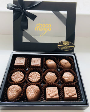 Coffret de 12 chocolats sans sucre (Maltitol).